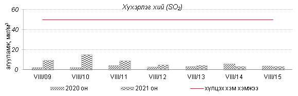 Өнгөрсөн 7 хоногийн агаарын чанарын хяналт шинжилгээний дүнгээр Улаанбаатар хотын агаарын чанар 8 дугаар сарын 9-өөс 12-ны өдрүүдэд бага бохирдолтой түвшинд байсан ба бусад өдөр хэвийн болон цэвэр түвшинд байлаа. Дэлгэрэнгүй мэдээг хавсралтаас үзнэ үү.