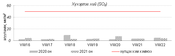 Улаанбаатар хотын агаарт түгээмэл бохирдуулах бодис хүхэрлэг хий /SO2/, азотын давхар исэл /NO2/, тоосонцор /PM10, PM2.5/, нүүрстөрөгчийн дутуу исэл /CO/, озон /O3/-ы агууламжийг тодорхойллоо.