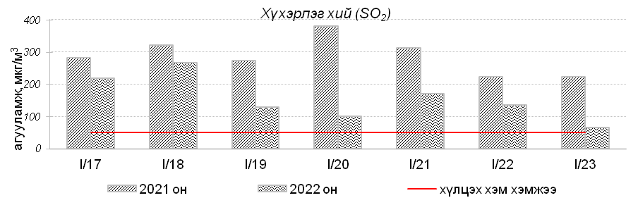 Улаанбаатар хотын агаарт түгээмэл бохирдуулах бодис хүхэрлэг хий /SO2/, азотын давхар исэл /NO2/, тоосонцор /PM10, PM2.5/, нүүрстөрөгчийн дутуу исэл /CO/, озон /O3/-ы агууламжийг тодорхойллоо.