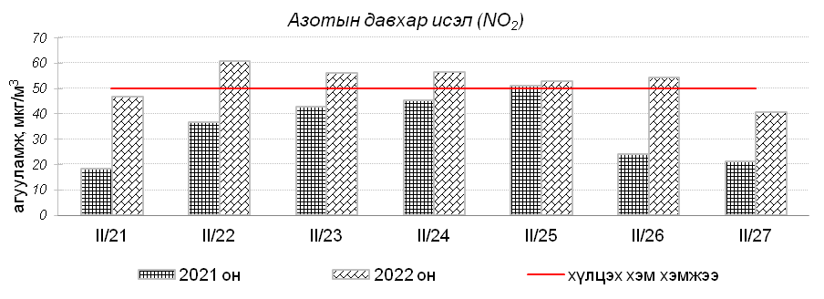 Улаанбаатар хотын агаарт түгээмэл бохирдуулах бодис хүхэрлэг хий /SO2/, азотын давхар исэл /NO2/, тоосонцор /PM10, PM2.5/, нүүрстөрөгчийн дутуу исэл /CO/, озон /O3/-ы агууламжийг тодорхойллоо.