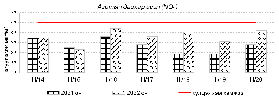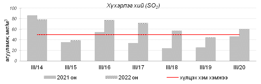 Улаанбаатар хотын агаарт түгээмэл бохирдуулах бодис хүхэрлэг хий /SO2/, азотын давхар исэл /NO2/, тоосонцор /PM10, PM2.5/, нүүрстөрөгчийн дутуу исэл /CO/, озон /O3/-ы агууламжийг тодорхойллоо.