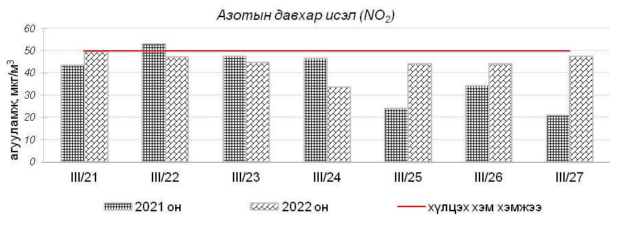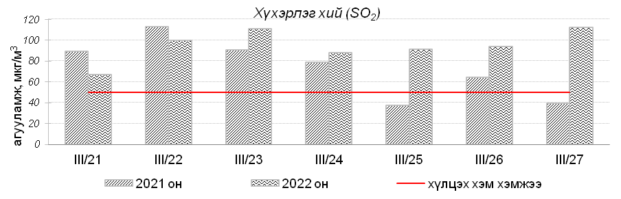 Улаанбаатар хотын агаарт түгээмэл бохирдуулах бодис хүхэрлэг хий /SO2/, азотын давхар исэл /NO2/, тоосонцор /PM10, PM2.5/, нүүрстөрөгчийн дутуу исэл /CO/, озон /O3/-ы агууламжийг тодорхойллоо.