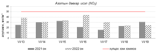 Улаанбаатар хотын агаарт түгээмэл бохирдуулах бодис хүхэрлэг хий /SO2/, азотын давхар исэл /NO2/, тоосонцор /PM10, PM2.5/, нүүрстөрөгчийн дутуу исэл /CO/, озон /O3/-ы агууламжийг тодорхойллоо.