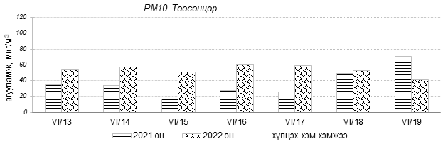 Өнгөрсөн 7 хоногийн агаарын чанарын хяналт шинжилгээний дүнгээр Улаанбаатар хотын агаарын чанар 1-р хороолол, 100-н айл, Толгойт, Нисэх, Хайлааст, 5-н буудал, 13-р хороолол, Цахилгаан станц, Мишээл экспо, Зайсан, Ургах наран хороолол орчим “Цэвэр” болон “Хэвийн”, Зурагт, Баруун 4-н зам, Амгалан орчим “Бага бохирдолтой” түвшинд байсан байна. Дэлгэрэнгүйг эндээс үзнэ үү.
