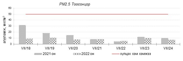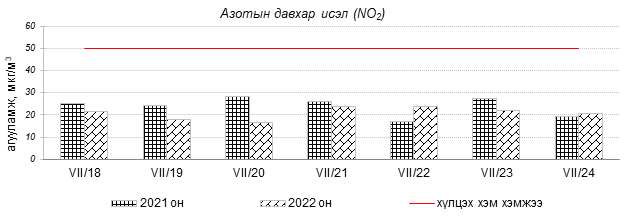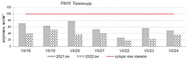 Өнгөрсөн 7 хоног буюу 2022 оны 7 дугаар сарын 18-аас 24-ний өдрийн агаарын чанарын хяналт шинжилгээний дүнгээр Улаанбаатар хотын агаарын чанар 1-р хороолол, 100-н айл,, Нисэх, Зурагт, Хайлааст, 5-н буудал, 13-р хороолол, Амгалан, Цахилгаан станц, Мишээл экспо, Зайсан, Ургах наран хороолол орчим “Цэвэр” болон “Хэвийн”, Зарим өдрүүдэд Баруун 4-н зам орчим “Бага бохирдолтой” түвшинд хүрсэн байна. Дэлгэрэнгүйг эндээс үзнэ үү.