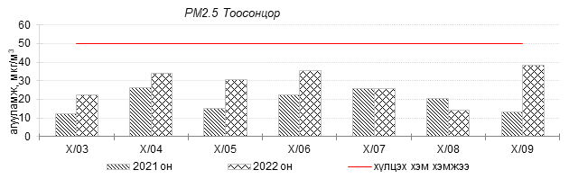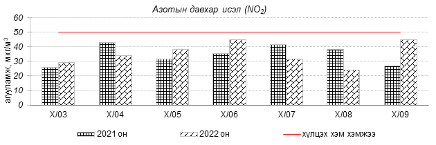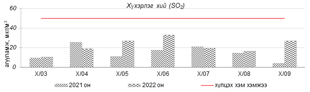 Улаанбаатар хотын агаарт түгээмэл бохирдуулах бодис хүхэрлэг хий /SO2/, азотын давхар исэл /NO2/, тоосонцор /PM10, PM2.5/, нүүрстөрөгчийн дутуу исэл /CO/, озон /O3/-ы агууламжийг тодорхойллоо.