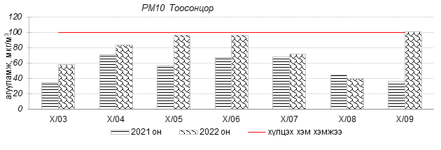 Өнгөрсөн 7 хоногийн буюу 2022 оны 10 дугаар сарын 03-аас 09-ний өдрийн агаарын чанарын хяналт шинжилгээний дүнгээр Улаанбаатар хотын агаарын чанар Зурагт, 5-н буудал, Шархад, Налайх, Мишээл экспо, Зайсан, Ургах наран хороолол орчим “Цэвэр” болон “Хэвийн”, зарим өдрүүдэд 1-р хороолол, 100-н айл, Толгойт, Нисэх, Хайлааст, 13-р хороолол, Баруун 4-н зам, Амгалан, Цахилгаан станц орчим “Бага бохирдолтой” түвшинд хүрсэн байна. Дэлгэрэнгүйг эндээс үзнэ үү.