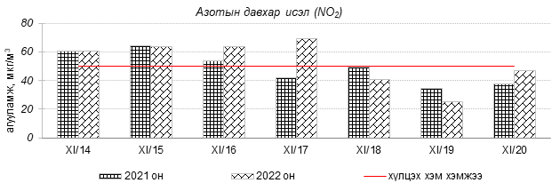 Улаанбаатар хотын агаарт түгээмэл бохирдуулах бодис хүхэрлэг хий /SO2/, азотын давхар исэл /NO2/, тоосонцор /PM10, PM2.5/, нүүрстөрөгчийн дутуу исэл /CO/, озон /O3/-ы агууламжийг тодорхойллоо.