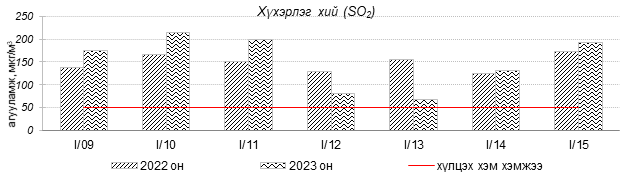 Улаанбаатар хотын агаарт түгээмэл бохирдуулах бодис хүхэрлэг хий /SO2/, азотын давхар исэл /NO2/, тоосонцор /PM10, PM2.5/, нүүрстөрөгчийн дутуу исэл /CO/, озон /O3/-ы агууламжийг тодорхойллоо.