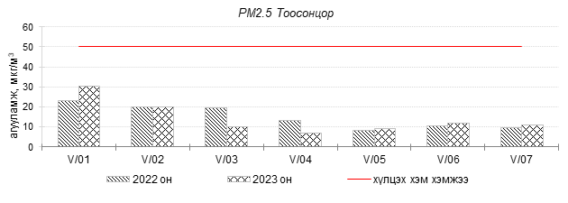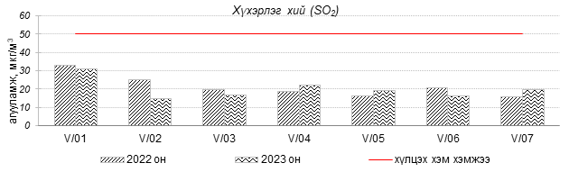 Улаанбаатар хотын агаарт түгээмэл бохирдуулах бодис хүхэрлэг хий /SO2/, азотын давхар исэл /NO2/, тоосонцор /PM10, PM2.5/, нүүрстөрөгчийн дутуу исэл /CO/, озон /O3/-ны агууламжийг тодорхойллоо.