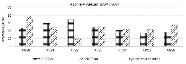 Улаанбаатар хотын агаарт түгээмэл бохирдуулах бодис хүхэрлэг хий /SO2/, азотын давхар исэл /NO2/, тоосонцор /PM10, PM2.5/, нүүрстөрөгчийн дутуу исэл /CO/, озон /O3/-ны агууламжийг тодорхойллоо.