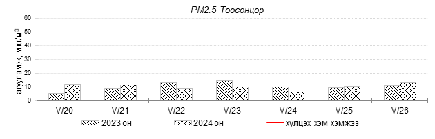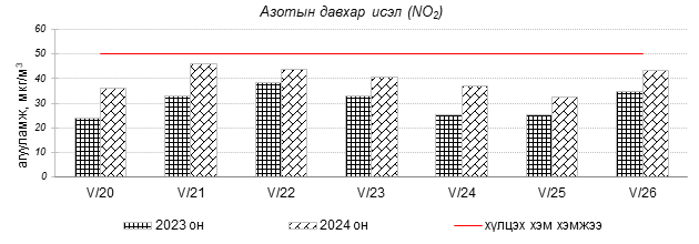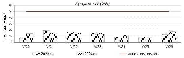 Улаанбаатар хотын агаарт түгээмэл бохирдуулах бодис хүхэрлэг хий /SO2/, азотын давхар исэл /NO2/, тоосонцор /PM10, PM2.5/, нүүрстөрөгчийн дутуу исэл /CO/, озон /O3/-ны агууламжийг тодорхойллоо.