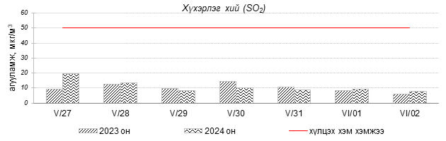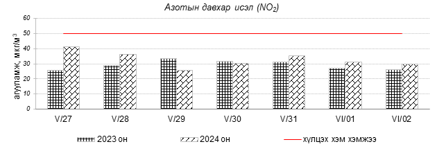 Улаанбаатар хотын агаарт түгээмэл бохирдуулах бодис хүхэрлэг хий /SO2/, азотын давхар исэл /NO2/, тоосонцор /PM10, PM2.5/, нүүрстөрөгчийн дутуу исэл /CO/, озон /O3/-ны агууламжийг тодорхойллоо.
