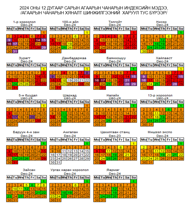 УЛААНБААТАР ХОТЫН ХҮЙТНИЙ УЛИРЛЫН АГААРЫН ЧАНАРЫН ТӨЛӨВ БАЙДЛЫН ТОЙМ /2024 ОНЫ 12 ДУГААР САР/