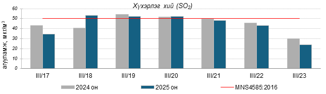 Улаанбаатар хотын агаарт түгээмэл бохирдуулах бодис хүхэрлэг хий /SO2/, азотын давхар исэл /NO2/, тоосонцор /PM10, PM2.5/, нүүрстөрөгчийн дутуу исэл /CO/, озон /O3/-ны агууламжийг тодорхойллоо.