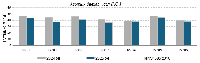 Улаанбаатар хотын агаарт түгээмэл бохирдуулах бодис хүхэрлэг хий /SO2/, азотын давхар исэл /NO2/, тоосонцор /PM10, PM2.5/, нүүрстөрөгчийн дутуу исэл /CO/, озон /O3/-ны агууламжийг тодорхойллоо.