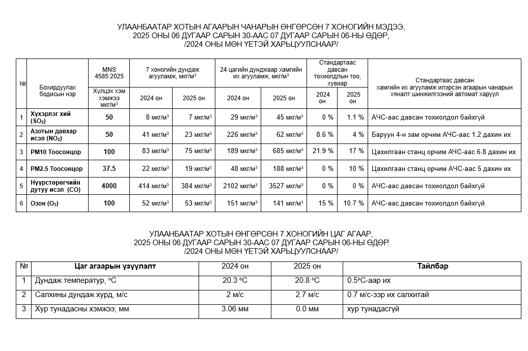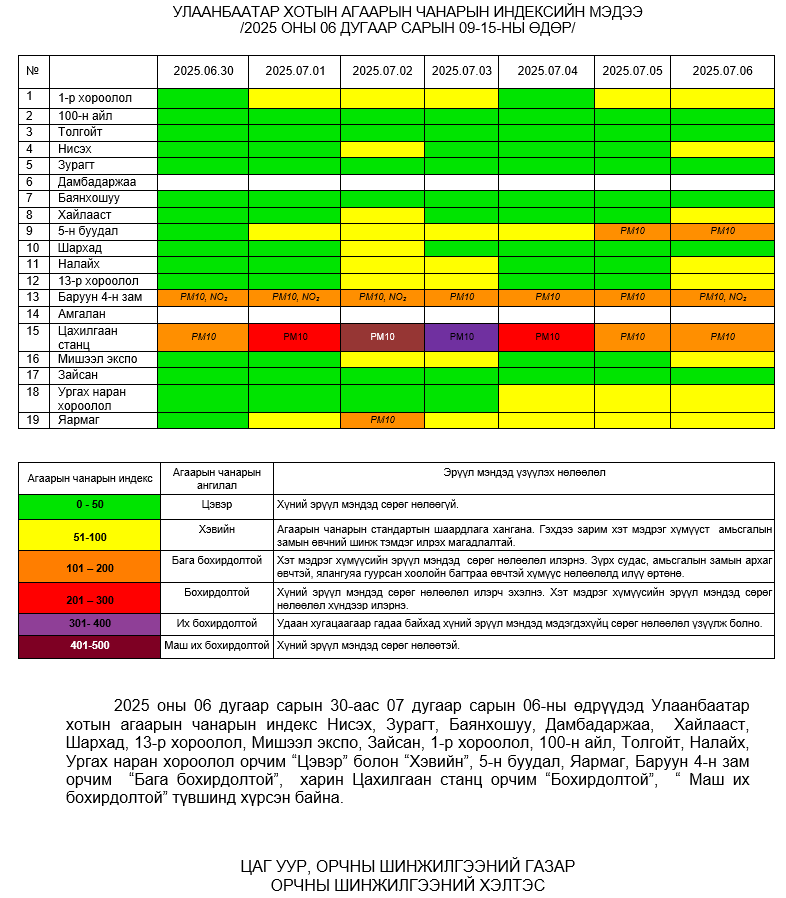 Улаанбаатар хотын агаарт түгээмэл бохирдуулах бодис хүхэрлэг хий /SO2/, азотын давхар исэл /NO2/, тоосонцор /PM10, PM2.5/,