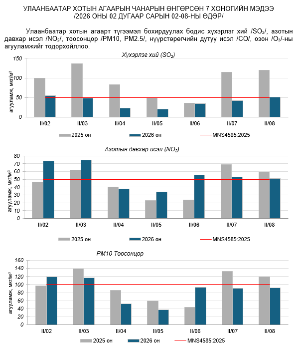 УЛААНБААТАР ХОТЫН АГААРЫН ЧАНАРЫН ХЯНАЛТ ШИНЖИЛГЭЭНИЙ ХОНОГИЙН МЭДЭЭ /2026.04.13/