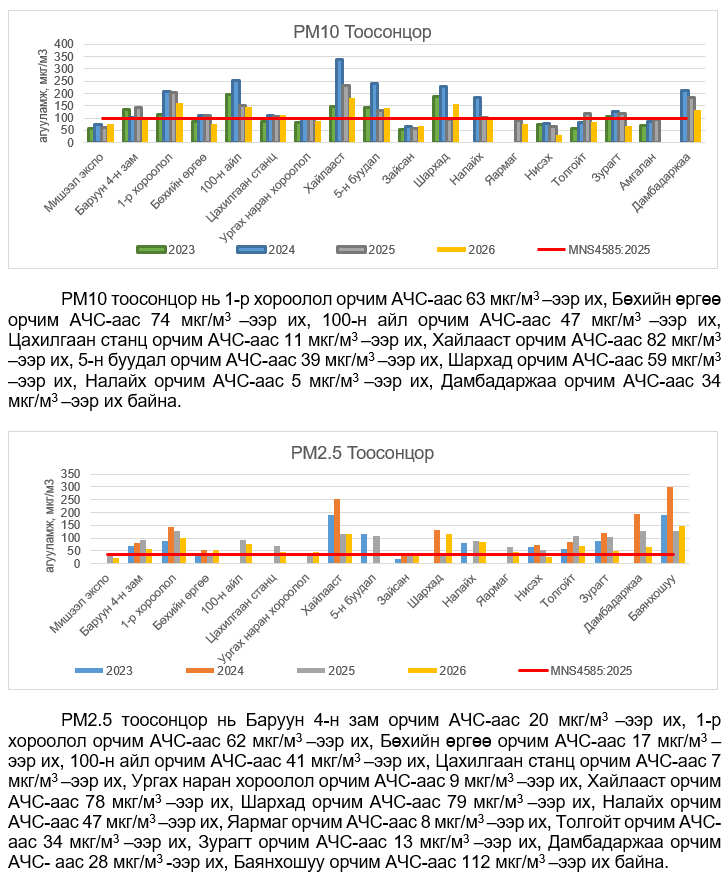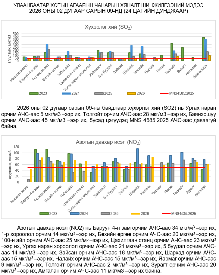 УЛААНБААТАР ХОТЫН АГААРЫН ЧАНАРЫН ХЯНАЛТ ШИНЖИЛГЭЭНИЙ ХОНОГИЙН МЭДЭЭ /2026.02.09/