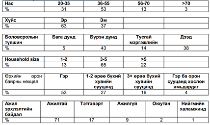 Хүснэгт 1. Судалгаанд оролцогчдын тойм