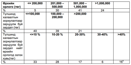 - сарын дундаж орлогын 10 хүртэлх хувийг зарцуулж буй өрх хамгийн их буюу 33,