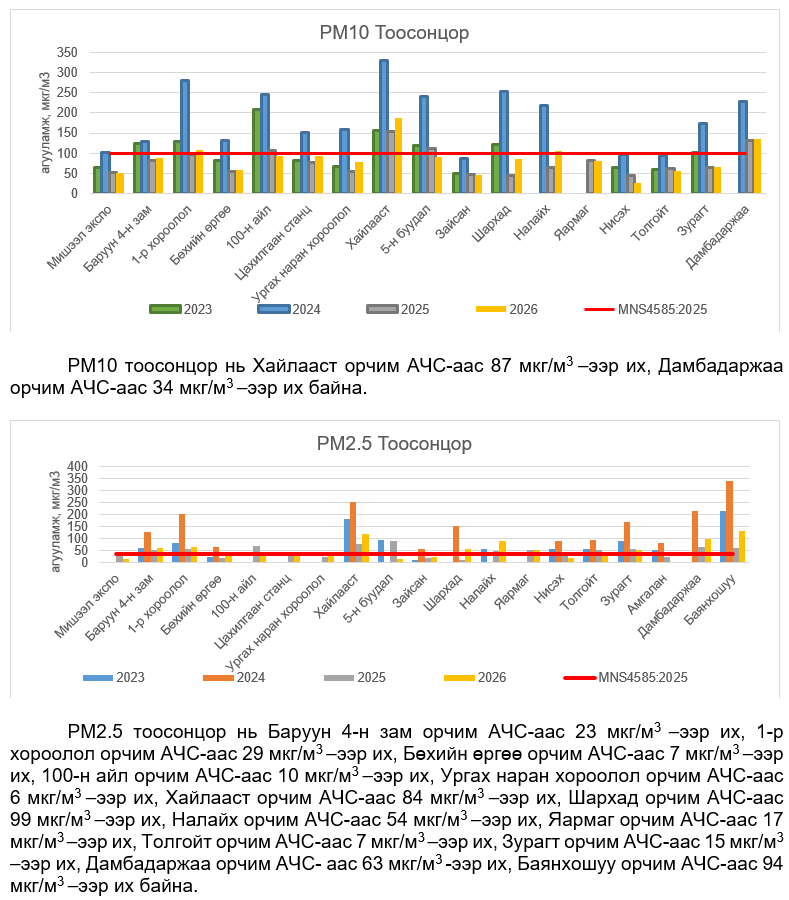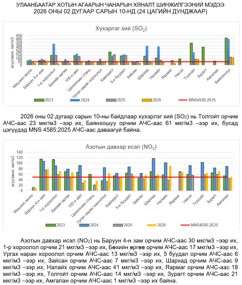 УЛААНБААТАР ХОТЫН АГААРЫН ЧАНАРЫН ХЯНАЛТ ШИНЖИЛГЭЭНИЙ ХОНОГИЙН МЭДЭЭ /2026.02.10/