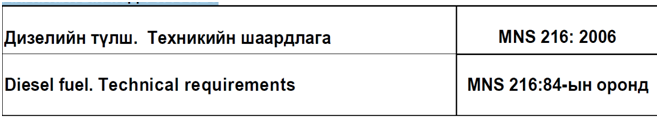 2.2 ГОСТ 305 : 1982 Дизелийн түлш. Техникийн шаардлага;