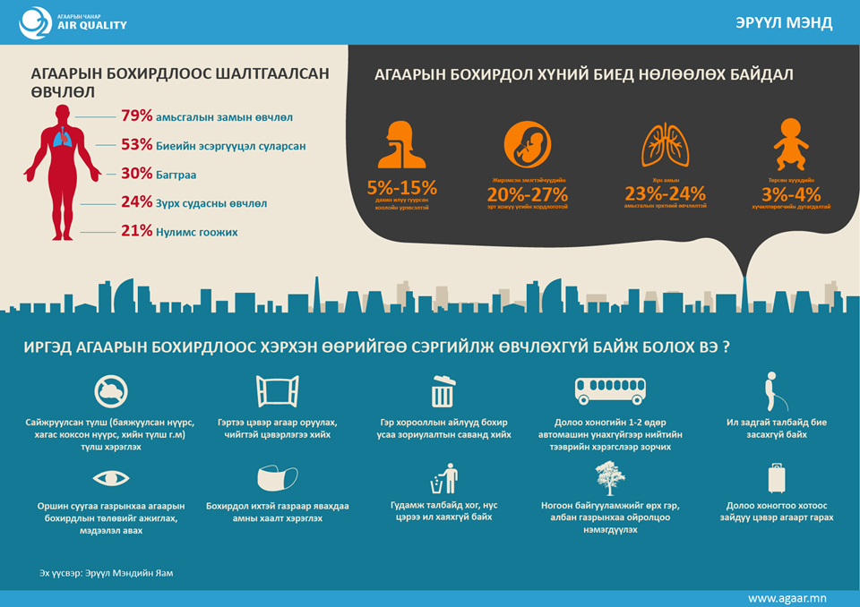 Инфографик: Агаарын бохирдлоос шалтгаалсан өвчлөл