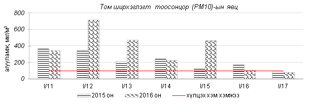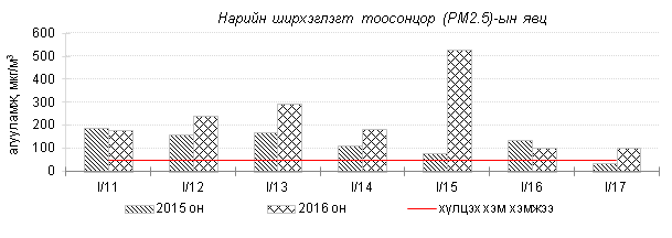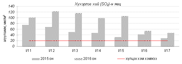 Улаанбаатар хотын агаарт түгээмэл бохирдуулах бодис хүхэрлэг хий /SO2/, азотын давхар исэл /NO2/, тоосонцор /PM10, PM2.5/, нүүрстөрөгчийн дутуу исэл /CO/, озон /O3/-ы агууламжийг тодорхойллоо.