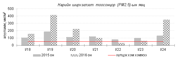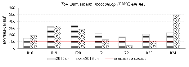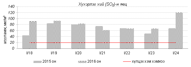 Улаанбаатар хотын агаарт түгээмэл бохирдуулах бодис хүхэрлэг хий /SO2/, азотын давхар исэл /NO2/, тоосонцор /PM10, PM2.5/, нүүрстөрөгчийн дутуу исэл /CO/, озон /O3/-ы агууламжийг тодорхойллоо.