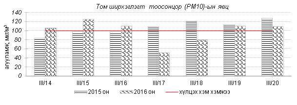 Улаанбаатар хотын агаарын чанарын 7 хоногийн мэдээ /2016.03.14-2016.03.20/