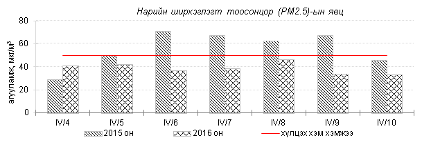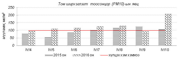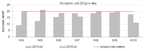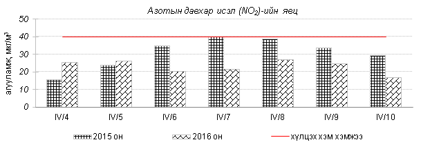 Улаанбаатар хотын агаарт түгээмэл бохирдуулах бодис хүхэрлэг хий /SO2/, азотын давхар исэл /NO2/, тоосонцор /PM10, PM2.5/, нүүрстөрөгчийн дутуу исэл /CO/, озон /O3/-ы агууламжийг тодорхойллоо.