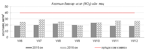 Улаанбаатар хотын агаарт түгээмэл бохирдуулах бодис хүхэрлэг хий /SO2/, азотын давхар исэл /NO2/, тоосонцор /PM10, PM2.5/, нүүрстөрөгчийн дутуу исэл /CO/, озон /O3/-ы агууламжийг тодорхойллоо.