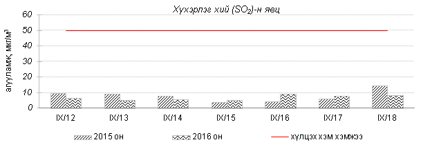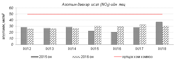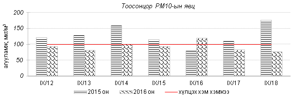 Өнгөрсөн 7 хоногийн агаарын чанарын хяналт шинжилгээний дүнгээр Улаанбаатар хотын төв зам болон гэр хорооллын орчимд агаар “Бага зэргийн бохирдолтой” түвшинд байлаа. Агаар дахь гол бохирдуулах бодис нь азотын давхар исэл NO2, тоосонцор PM10 байна. Дэлгэрэнгүй мэдээг хавсралтаас үзнэ үү.