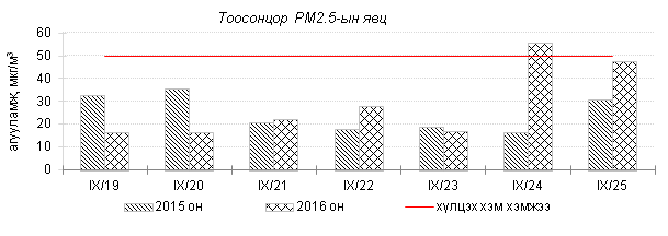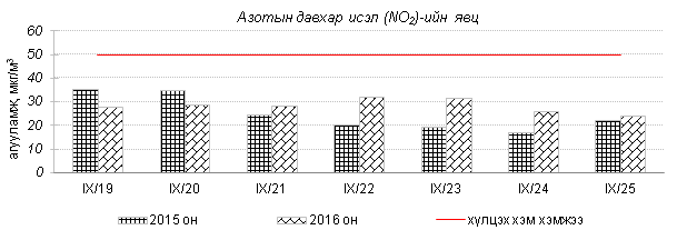 Өнгөрсөн 7 хоногийн агаарын чанарын хяналт шинжилгээний дүнгээр Улаанбаатар хотын төв зам болон гэр хорооллын орчимд агаар “Бага зэргийн бохирдолтой” түвшинд байлаа. Агаар дахь гол бохирдуулах бодис нь азотын давхар исэл NO2, тоосонцор PM10 байна. Дэлгэрэнгүй мэдээллийг хавсралтаас үзнэ үү.