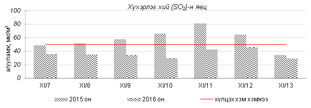 Улаанбаатар хотын агаарт түгээмэл бохирдуулах бодис хүхэрлэг хий /SO2/, азотын давхар исэл /NO2/, тоосонцор /PM10, PM2.5/, нүүрстөрөгчийн дутуу исэл /CO/, озон /O3/-ы агууламжийг тодорхойллоо.