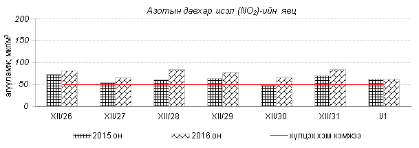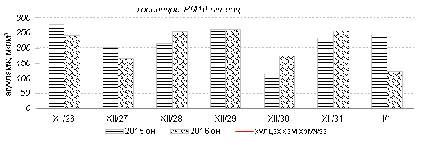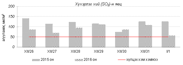 Улаанбаатар хотын агаарт түгээмэл бохирдуулах бодис хүхэрлэг хий /SO2/, азотын давхар исэл /NO2/, тоосонцор /PM10, PM2.5/, нүүрстөрөгчийн дутуу исэл /CO/, озон /O3/-ы агууламжийг тодорхойллоо.