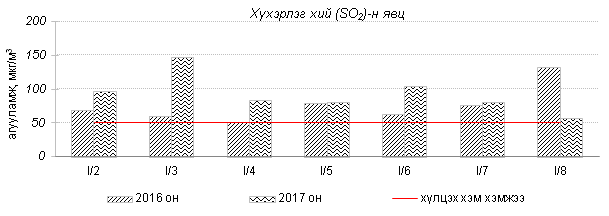 Улаанбаатар хотын агаарт түгээмэл бохирдуулах бодис хүхэрлэг хий /SO2/, азотын давхар исэл /NO2/, тоосонцор /PM10, PM2.5/, нүүрстөрөгчийн дутуу исэл /CO/, озон /O3/-ы агууламжийг тодорхойллоо.