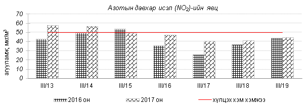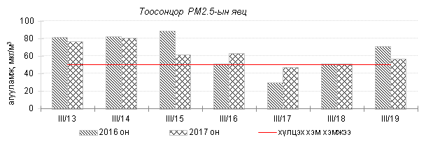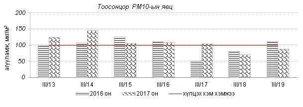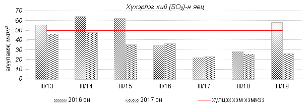 Улаанбаатар хотын агаарт түгээмэл бохирдуулах бодис хүхэрлэг хий /SO2/, азотын давхар исэл /NO2/, тоосонцор /PM10, PM2.5/, нүүрстөрөгчийн дутуу исэл /CO/, озон /O3/-ы агууламжийг тодорхойллоо.