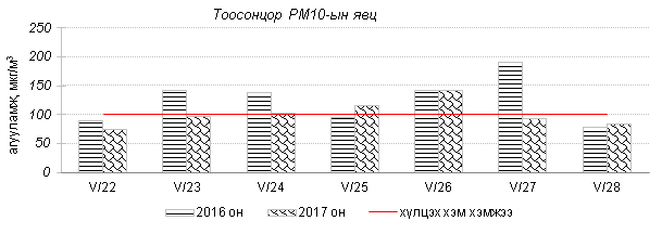 Өнгөрсөн 7 хоногийн агаарын чанарын хяналт шинжилгээний дүнгээр Улаанбаатар хотод агаар “Бага” зэргийн бохидолтой түвшинд байсан байна. Агаар дахь гол бохирдуулах бодис нь PM10 тоосонцор, NO2 азотын давхар исэл байна. Дэлгэрэнгүй мэдээг хавсралтаас үзнэ үү.