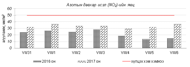 Өнгөрсөн 7 хоногийн агаарын чанарын хяналт шинжилгээний дүнгээр томоохон автозамуудын орчимд агаар “Бага” зэргийн бохидолтой бусад хэсэгт агаар “Хэвийн” болон “Цэвэр” түвшинд байсан байна. Агаар дахь гол бохирдуулах бодис нь NO2 азотын давхар исэл, O3 озон байна. Дэлгэрэнгүй мэдээг хавсралтаас үзнэ үү.