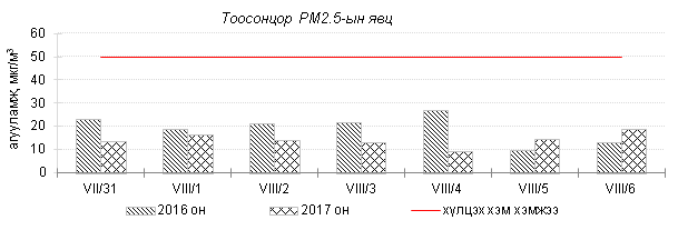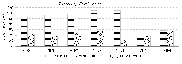 Улаанбаатар хотын агаарт түгээмэл бохирдуулах бодис хүхэрлэг хий /SO2/, азотын давхар исэл /NO2/, тоосонцор /PM10, PM2.5/, нүүрстөрөгчийн дутуу исэл /CO/, озон /O3/-ы агууламжийг тодорхойллоо.
