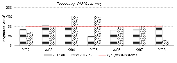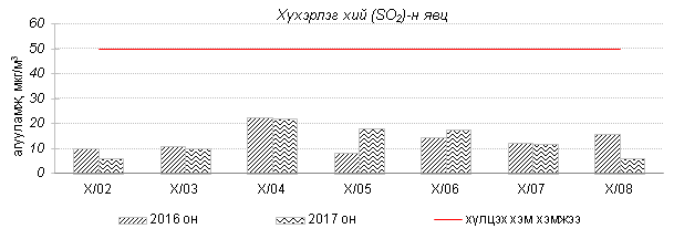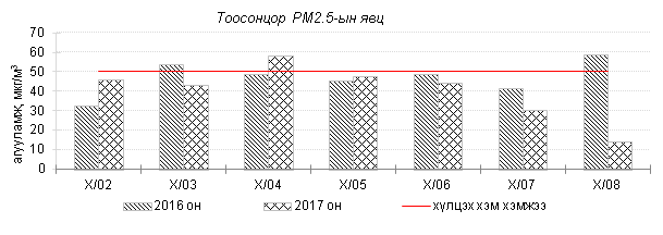 Улаанбаатар хотын агаарт түгээмэл бохирдуулах бодис хүхэрлэг хий /SO2/, азотын давхар исэл /NO2/, тоосонцор /PM10, PM2.5/, нүүрстөрөгчийн дутуу исэл /CO/, озон /O3/-ны агууламжийг тодорхойллоо.