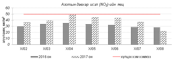Өнгөрсөн 7 хоногийн агаарын чанарын хяналт шинжилгээний дүнгээр Улаанбаатар хотын хэмжээнд агаар “Хэвийн” болон “Бага” зэргийн бохирдолтой байна. Агаар дахь гол бохирдуулах бодис нь азотын давхар исэл (NO2), PM2.5, PM10 тоосонцор байна. Дэлгэрэнгүй мэдээг хавсралтаас үзнэ үү.
