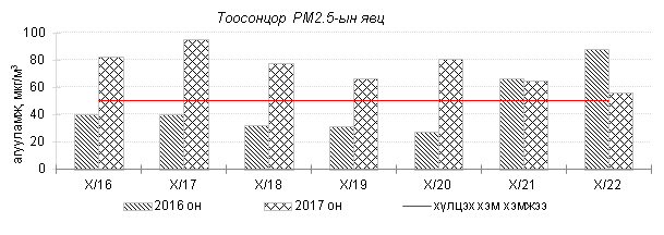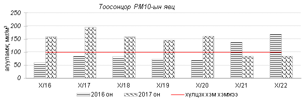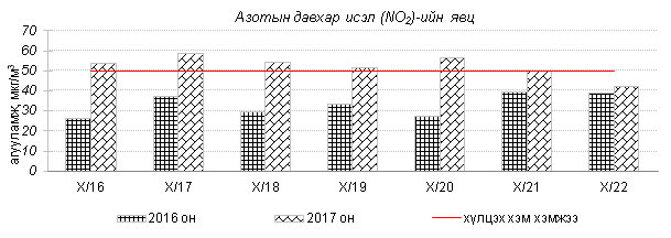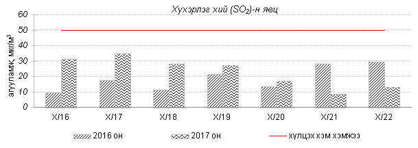 Улаанбаатар хотын агаарт түгээмэл бохирдуулах бодис хүхэрлэг хий /SO2/, азотын давхар исэл /NO2/, тоосонцор /PM10, PM2.5/, нүүрстөрөгчийн дутуу исэл /CO/, озон /O3/-ны агууламжийг тодорхойллоо.