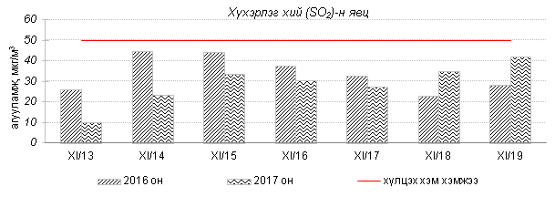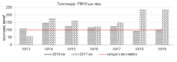 Улаанбаатар хотын агаарт түгээмэл бохирдуулах бодис хүхэрлэг хий /SO2/, азотын давхар исэл /NO2/, тоосонцор /PM10, PM2.5/, нүүрстөрөгчийн дутуу исэл /CO/, озон /O3/-ны агууламжийг тодорхойллоо.