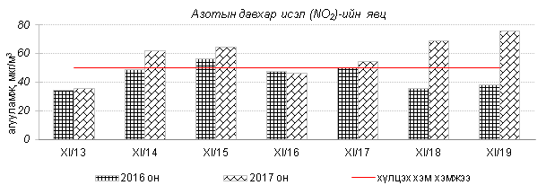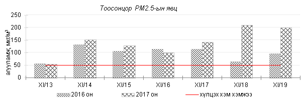 Өнгөрсөн 7 хоногийн агаарын чанарын хяналт шинжилгээний дүнгээр Улаанбаатар хотын хэмжээнд гэр хороолол орчим агаар “Дунд” зэргийн болон “Их” бохирдолтой түвшинд хүрсэн бол автозам, орон сууцны хороолол орчим агаар “Бага” зэргийн бохирдолтой байна. Агаар дахь гол бохирдуулах бодис нь PM2.5, PM10 тоосонцор, азотын давхар исэл (NO2) байна. Дэлгэрэнгүй мэдээг хавсралтаас үзнэ үү.