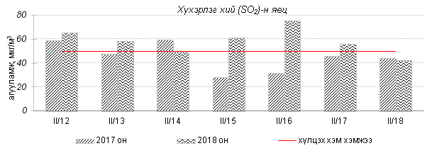 Өнгөрсөн 7 хоногийн агаарын чанарын хяналт шинжилгээний дүнгээр Улаанбаатар хотын агаарын чанар “Дунд” болон “Их” бохирдолтой түвшинд хүрч 2017 оны мөн үетэй харьцуулахад агаар дахь PM2.5, PM10 тоосонцор, хүхэрлэг хийн агууламж 25-33%-иар их байна. PM2.5, PM10 тоосонцор, хүхэрлэг хий, азотын давхар ислийн 24 цагийн дундаж хамгийн их агууламж агаарын чанарын стандартаас 4-6 дахин их байна. Дэлгэрэнгүй мэдээг хавсралтаас үзнэ үү.
