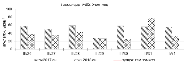 Улаанбаатар хотын агаарт түгээмэл бохирдуулах бодис хүхэрлэг хий /SO2/, азотын давхар исэл /NO2/, тоосонцор /PM10, PM2.5/, нүүрстөрөгчийн дутуу исэл /CO/, озон /O3/-ны агууламжийг тодорхойллоо.