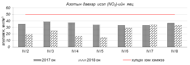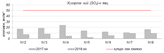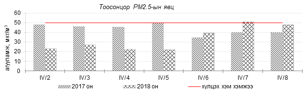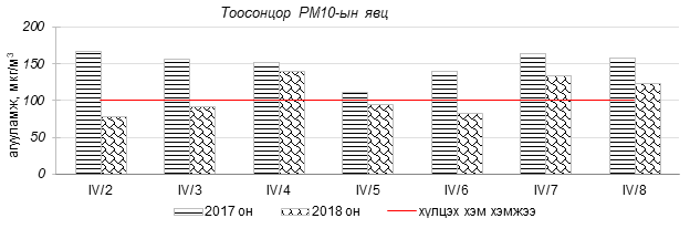 Өнгөрсөн 7 хоногийн агаарын чанарын хяналт шинжилгээний дүнгээр Улаанбаатар хотын хэмжээнд агаарын чанар ихэнх өдрүүдэд “Бага” зэргийн бохирдолтой байсан байна. Агаар дахь PM10, PM2,5 тоосонцрын агууламж 2017 оны мөн үетэй харьцуулахад 1.3-1.4 дахин бага, 24 цагийн дундаж хамгийн их агууламж агаарын чанарын стандартаас 1.1-1.9 дахин их байна. Дэлгэрэнгүй мэдээг хавсралтаас үзнэ үү.